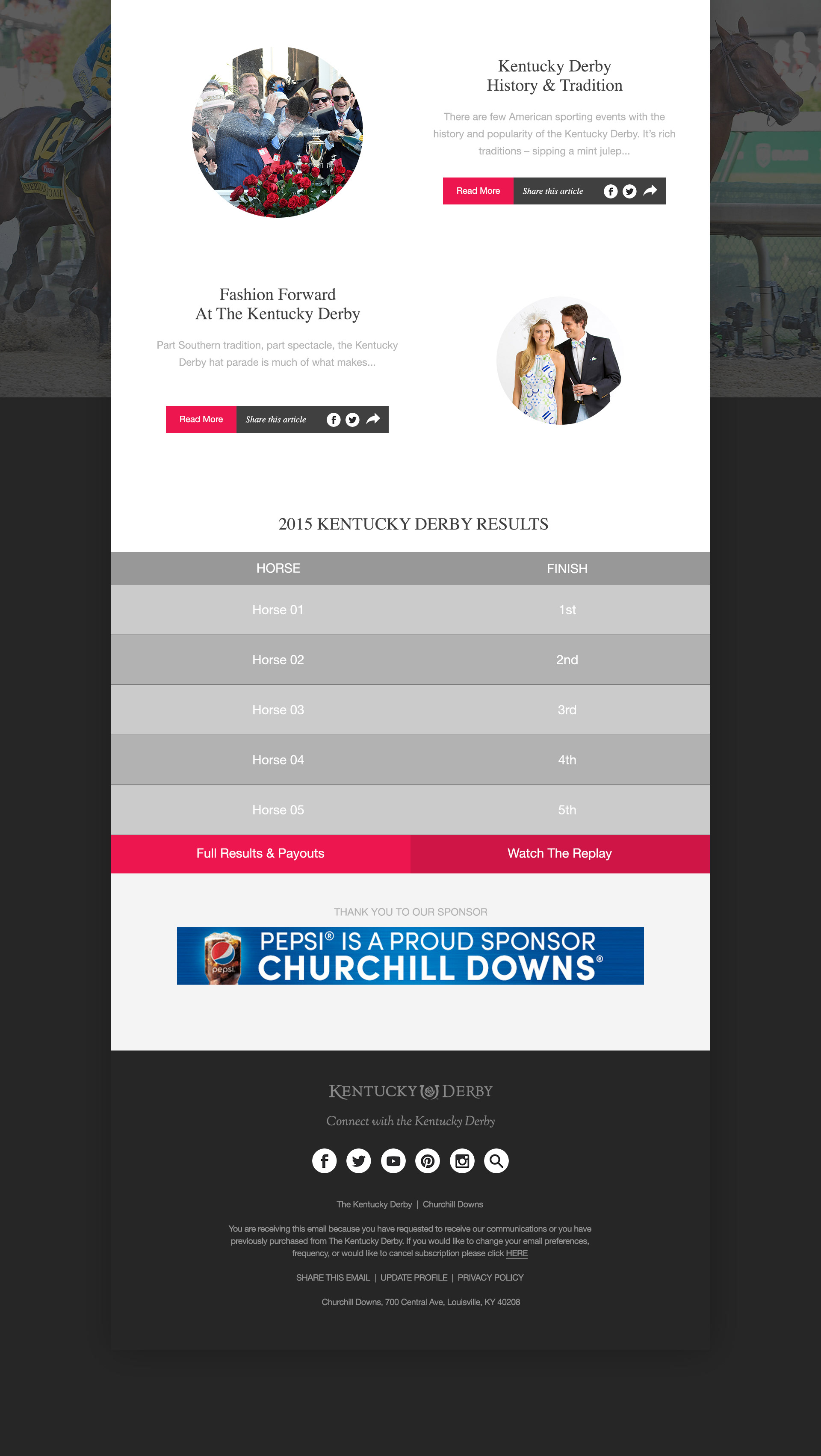 Email Newsletter Design for Kentucky Derby Insiders.