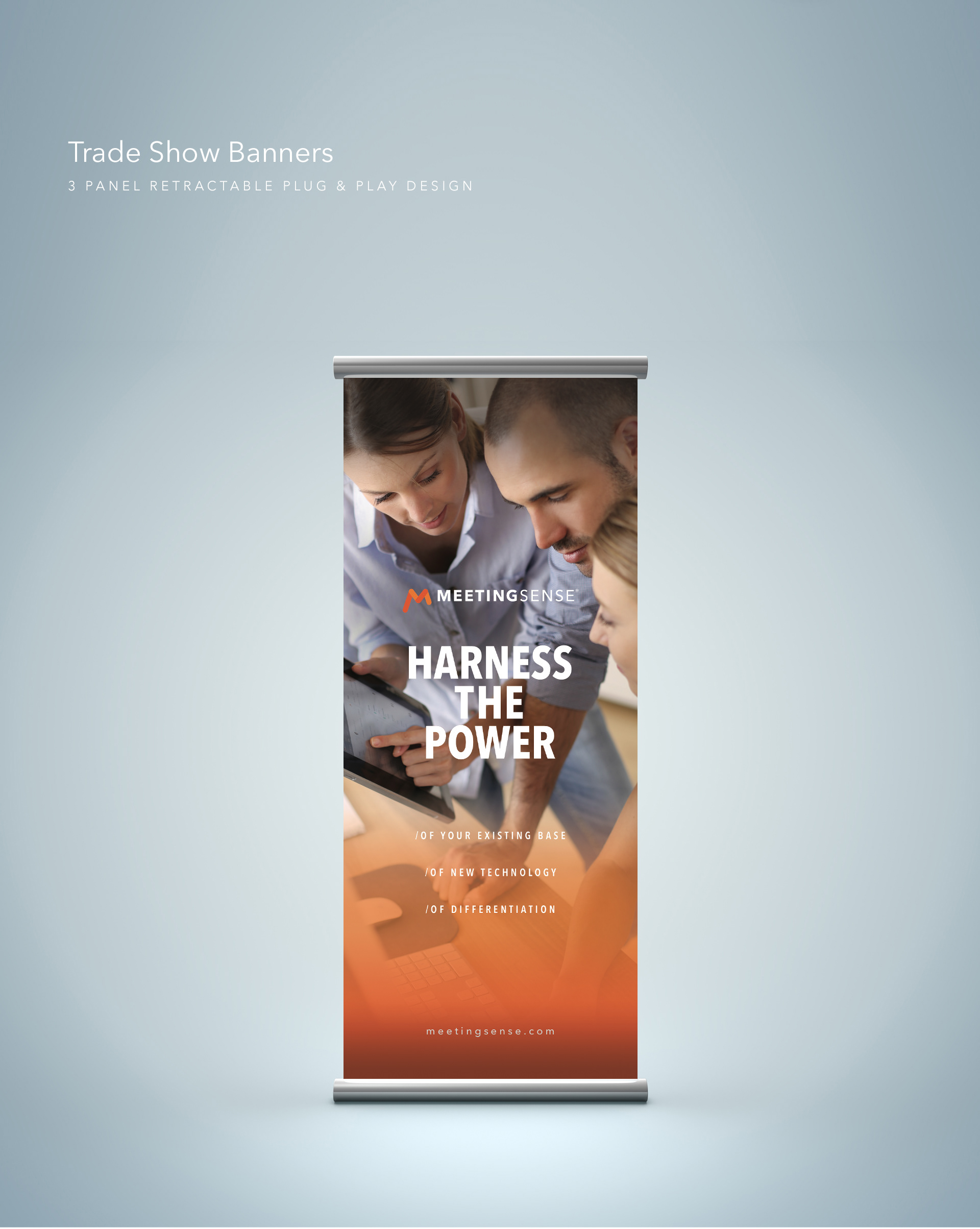MeetingSense Brand Identity Redesign, Trade Show Launch Marketing Materials, and Promotional Video Design