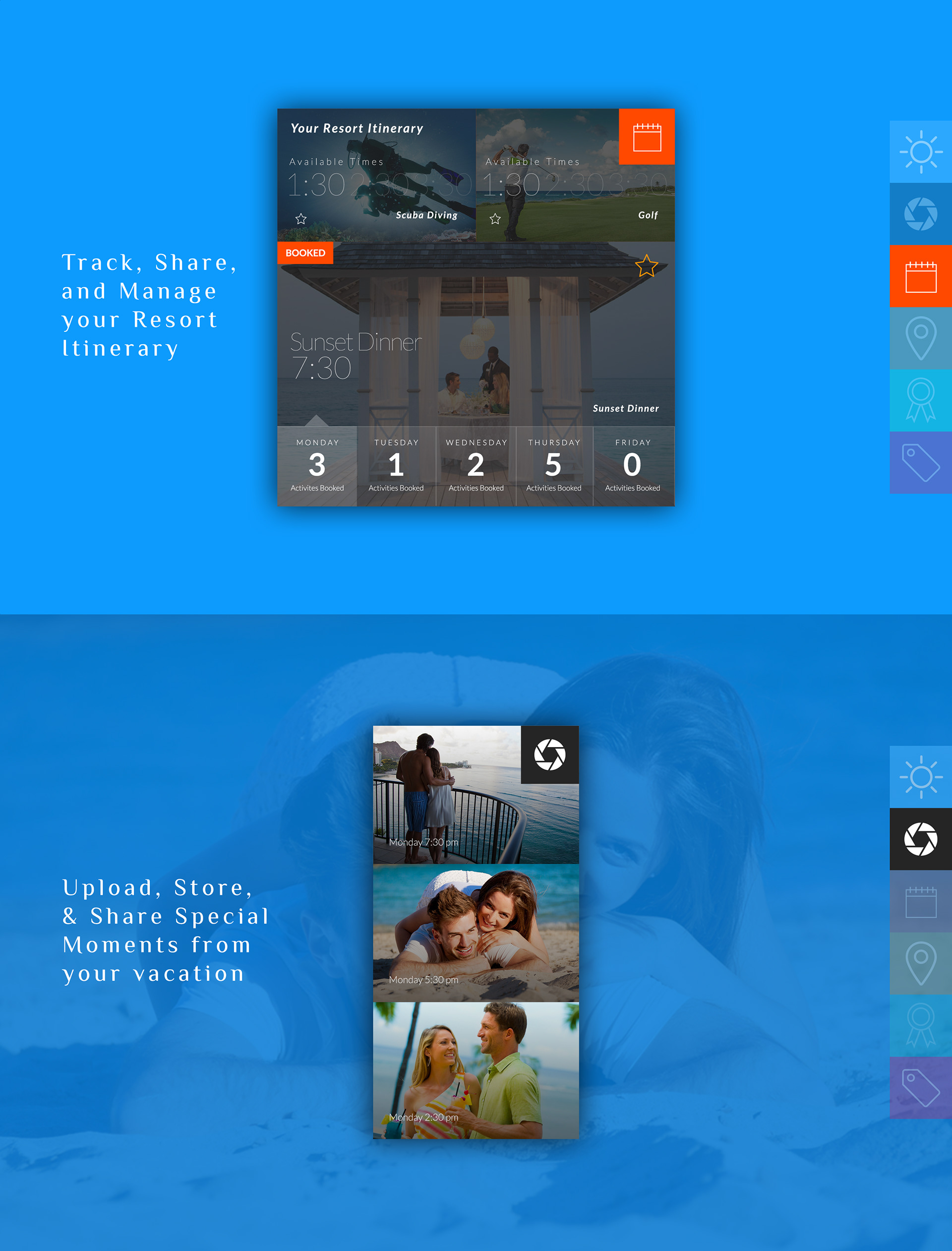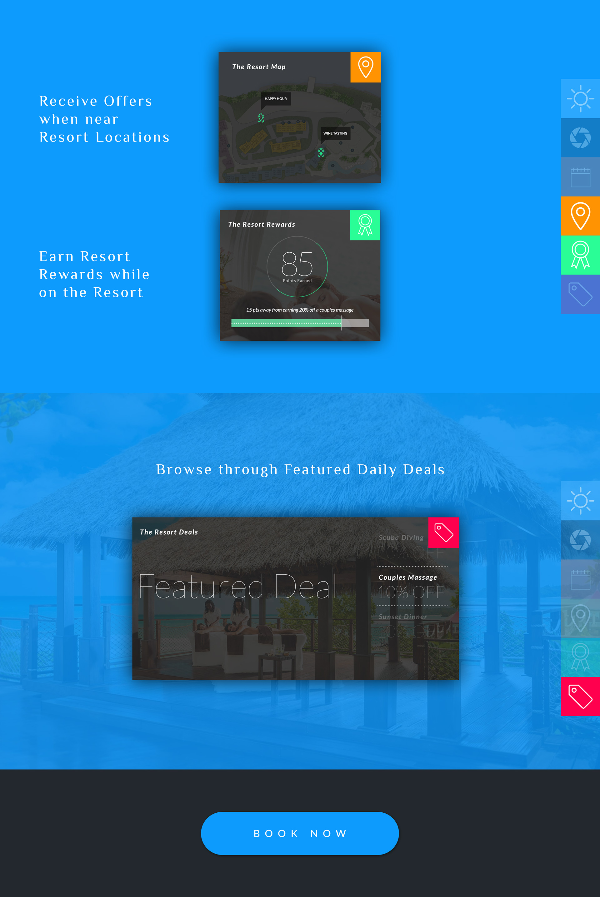 A design and UI/UX exploration for the Resort Industry, utilizing current technology to create a seamless user experience when booking a vacation or weekend getaway.